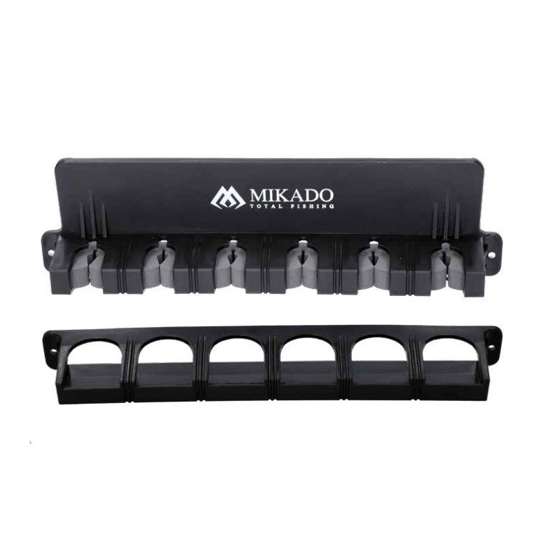 Łatwy w montażu uchwyt na 6 wędek przechowywanych w pozycji stojącej np. na ścianie garażu. Lekki i kompaktowy, wyposażony w bezpieczną dla blanku piankę. W komplecie kołki montażowe.