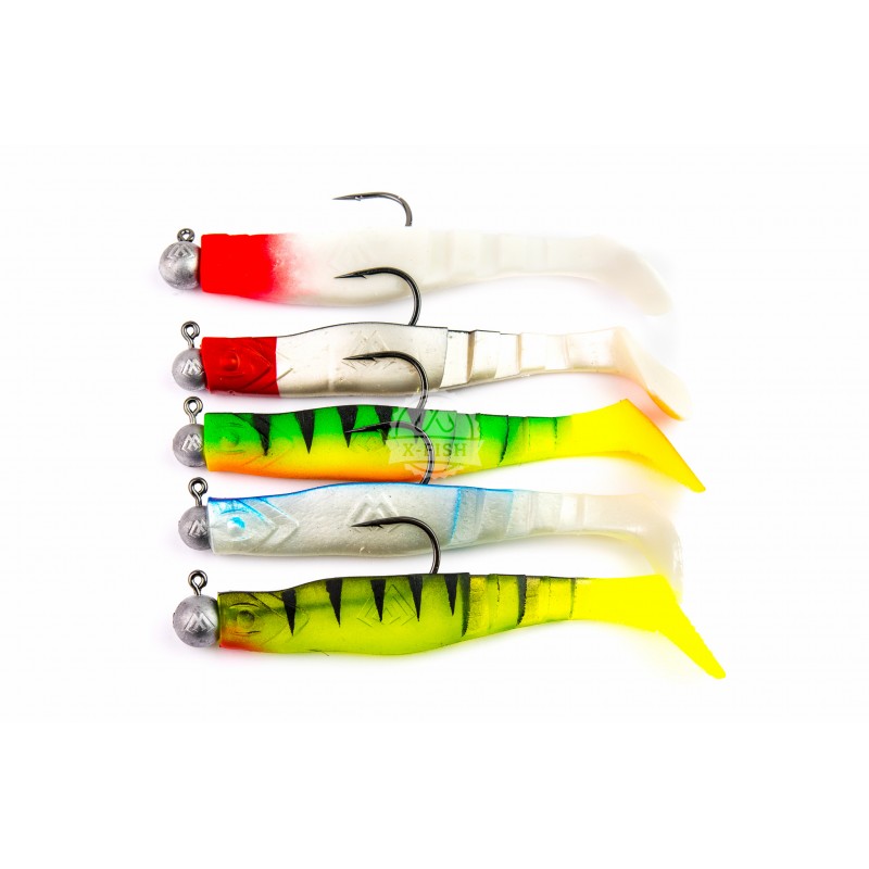 Lures armed with Mikado jaws classic 7g hooks.