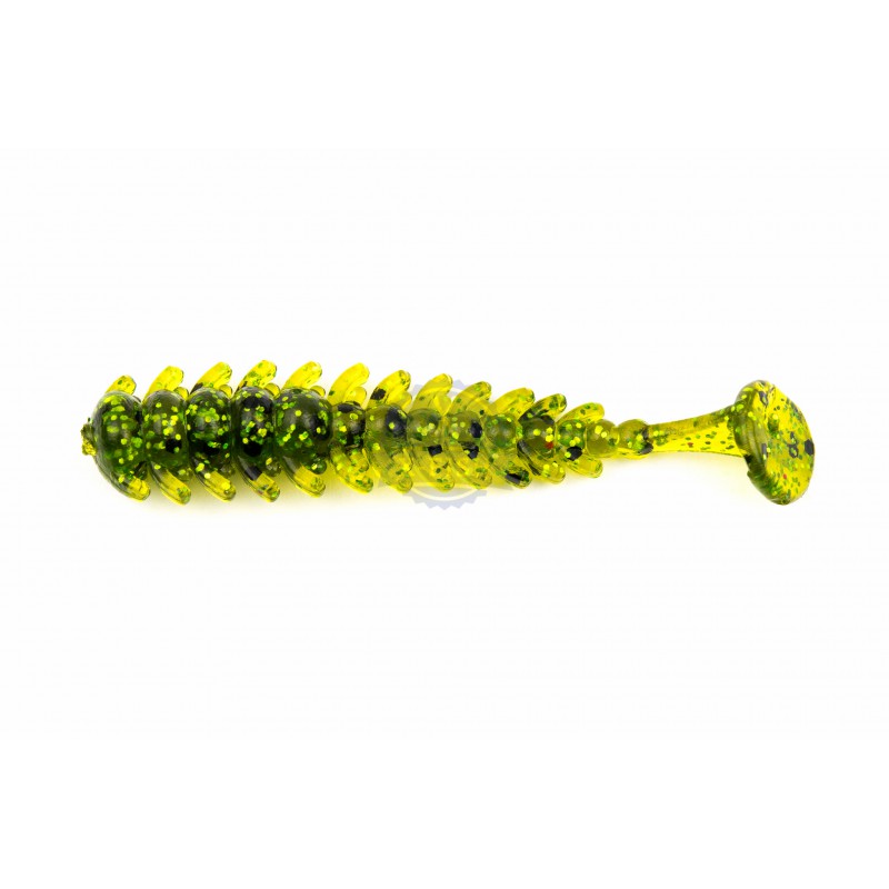 Żebrowany pokryty wypustkami korpus oraz odpowiednio dobrany ogonek sprawiają że przynęta jest chętnie atakowana przez niemal wszystkie drapieżniki.