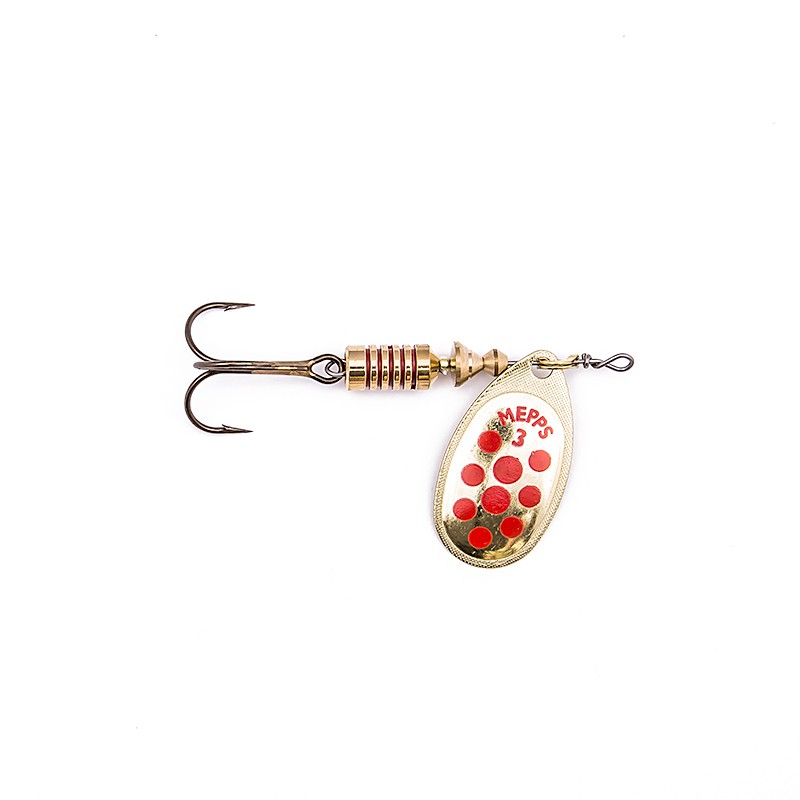 AGLIA DECOREES kolejny klasyk MEPPS-a, tylko pozornie czerwone i czarne kropki na standardowych paletkach typu Aglia to taki sobie bezładny ozdobnik. Tymczasem podczas wirowania tworzy się w wodzie paskowana smuga o zależnych od prędkości obrotów przejściach tonalnych, gradientach znakomicie uatrakcyjniająca łowność błystek.
